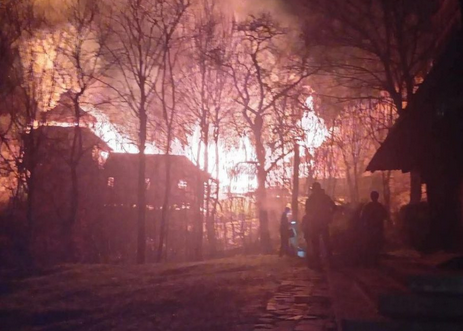 «Пожежа швидко поширювалася деревʼяними конструкціями, однак загрози для розташованої поруч памʼятки архітектури — церкви Покрови Пресвятої Богородиці — не було», — розповідають рятувальники.