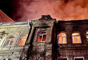 Сообщается, что удар пришелся по району улицы Шевченко, где возник масштабный пожар. Огонь почти полностью уничтожил архитектурный памятник конца XIX века, известный как доходный дом. В здании находились культурные и музейные пространства, а также православный центр Украинской Православной Церкви.