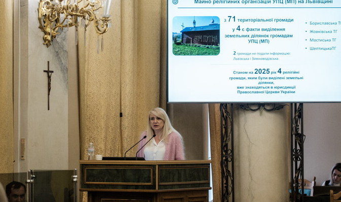 Під час позачергової сесії Львівської обласної ради 3 лютого, депутати заслухали інформацію представників Львівської обласної військової адміністрації та поліції області щодо передачі майна і земельних ділянок, які перебували у власності або користуванні релігійних громад Української Православної Церкви.